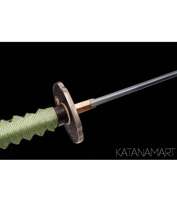 La Tomoe Katana est une épée japonaise haut de gamme, forgée en acier 1095 trempé à l’argile, avec un hamon gunome-midare authentique et poli à la main. Son koshirae orné du symbole Tomoe fait de cette katana une pièce unique pour ceux qui souhaitent acheter une épée samouraï en France.