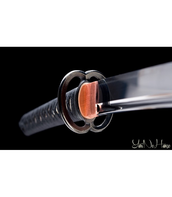 • Tsuka-ito en soie noire et Tsuba traditionnel de type Musashi conçu pour l'entrainement.